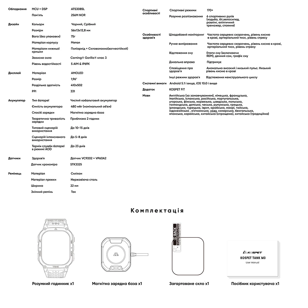 Будильник, Календар, Калькулятор, Контроль якості сну, Крокомір, Лічильник калорій, Підтримка Bluetooth, Пошук телефону, Пульсометр, Секундомір, Таймер, Телефонна книжка, Фітнес-трекер